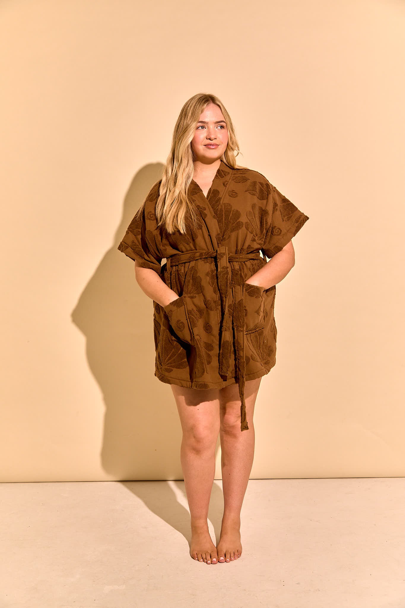 • Made out of towel material (100% cotton), thick enough so you don’t feel naked but light enough so you don’t feel like you’re a walking Michelin man.